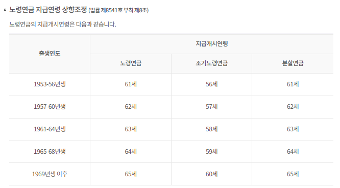 예를 들어, 1969년 이후 태어난 사람은 만 65세부터 국민연금을 받을 수 있습니다.