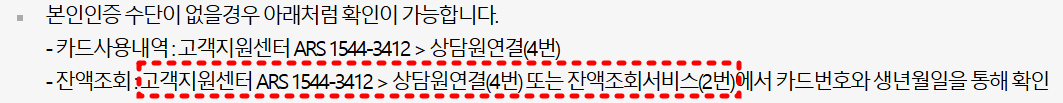 3. 카드번호와 생년월일을 입력하면 남은 잔액을 안내받을 수 있습니다.