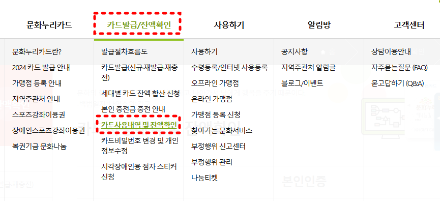 2. 상단 메뉴에서 ‘카드발급/잔액확인’을 선택합니다.